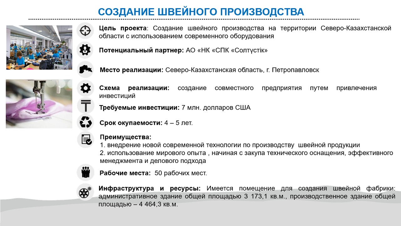 Основными видами деятельности СПК являются: • создание единого экономического рынка на основе кластерного подхода;• формирование благоприятной экономической среды для привлечения инвестиций и инноваций; • участие в разработке и реализации инвестиционных проектов; • участие в разработке и реализации программ, направленных на развитие социальной сферы; • разведка, добыча, переработка полезных ископаемых, в том числе и общераспространенных, определенных в перечне видов и объемов запасов полезных ископаемых, утвержденном Правительством Республики Казахстан; • взаимодействие с государственными органами по передаче части активов государственной собственности, земли в собственность Общества; • разработка и реализация проектов по реабилитации и реструктуризации организации, переданных государством в оплату, объявленных акций Общества, или создание на их основе новых производств; • реализация бизнес-проектов, в том числе на основе концессии и кластерной инициативы; • создание институциональных условий для развития малого и среднего бизнеса; • создание конкурентоспособных, экспортоориентированных производств на основе государственно-частного партнерства. • иная деятельность, не противоречащая законодательству Республики Казахстан и целям создания Общества.